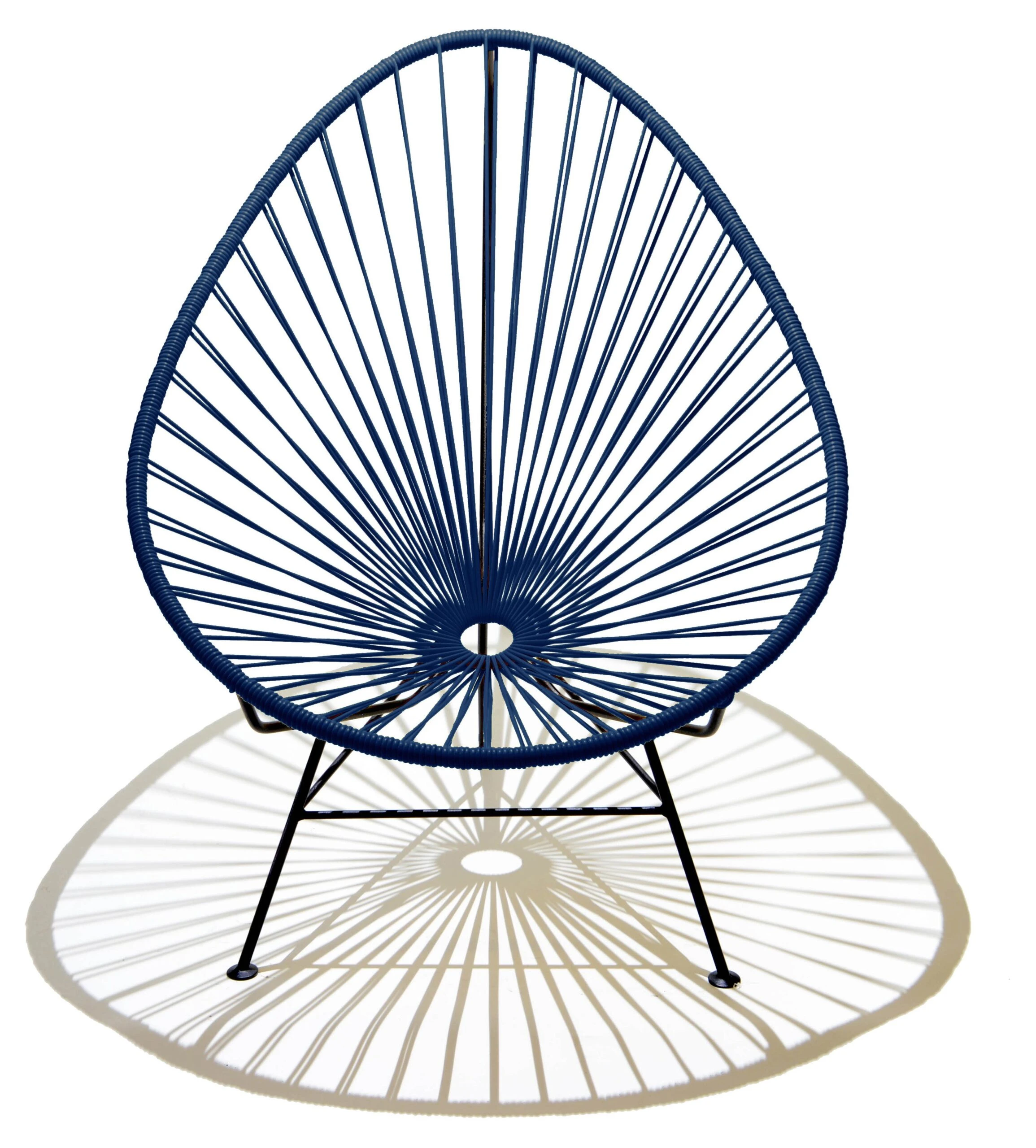 Handcrafted by skilled artisans and certified welders in Mexico, this modern lounge chair is crafted of woven, UV-protected PVC cord in navy with a contrasting, powder-coated steel frame. While it’s designed for use on the porch or patio, a sleek silhouette and impressive durability also make it a great choice for an indoor sunroom or even a playroom.