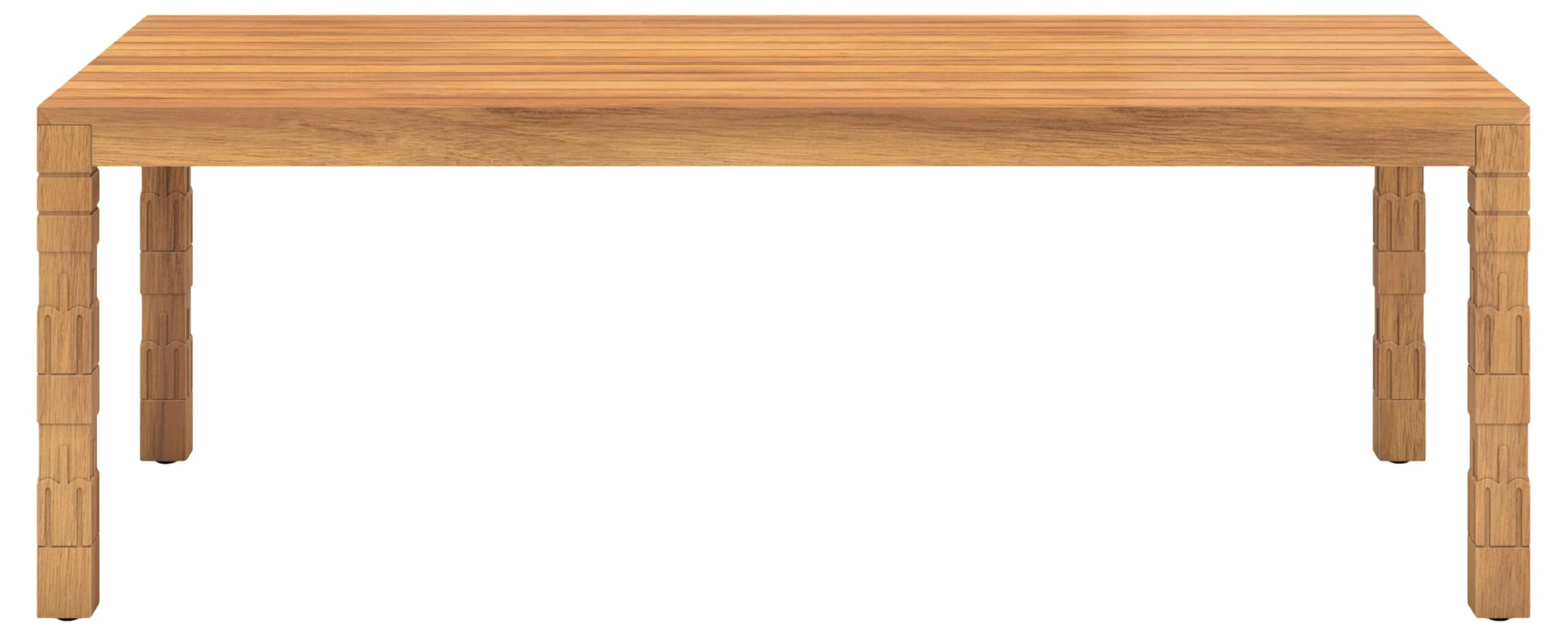 Carved legs add artisanal elegance to this dining table, which is crafted of FSC-certified teak. Teak is prized not only for its beauty but also for its resistance to moisture, warping, cracking, and decay, so this table is durable enough for outdoor use and chic enough for indoors. It seats as many as eight people.