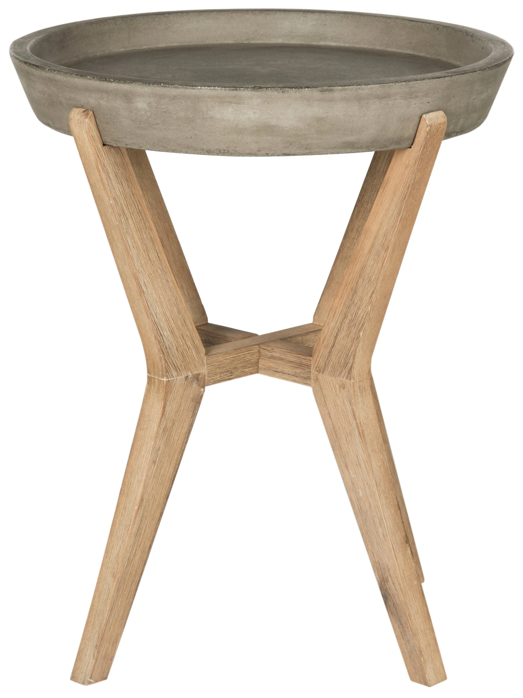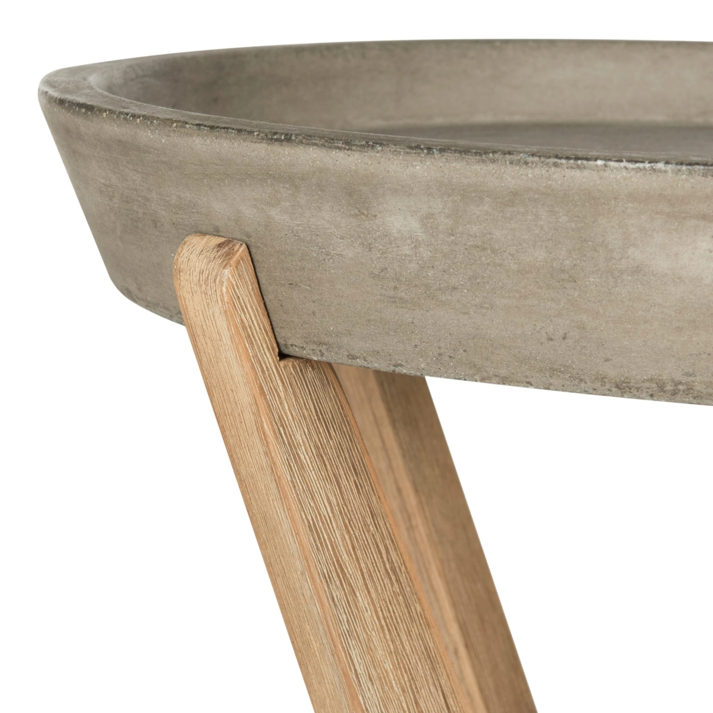 The balanced proportions and gallery concrete top of this sculptural side table take inspiration from the award-winning style of a Finnish design. An expressive base made of acacia with an X-shaped stretcher holds the look in place.
