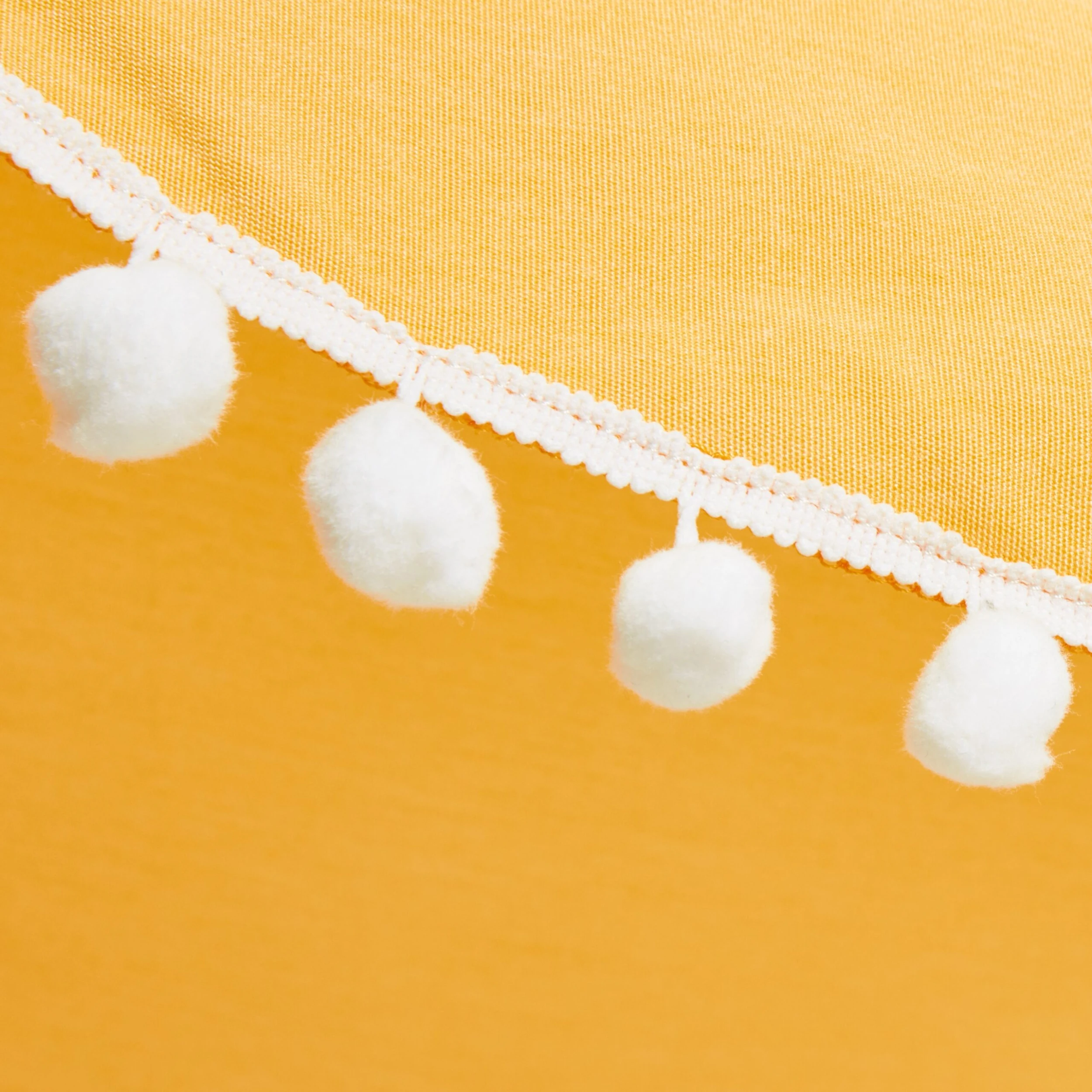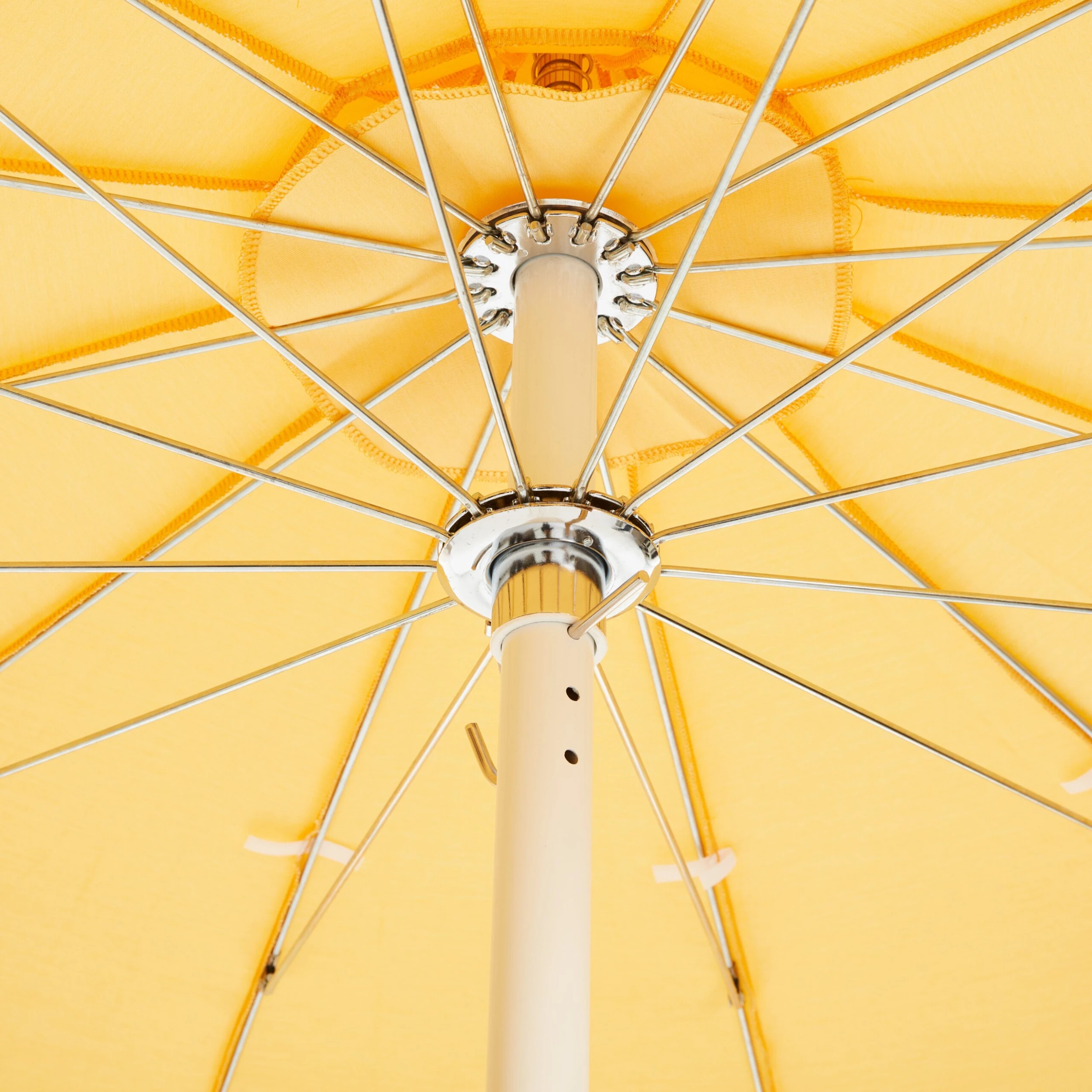 Designed by us and available only at One Kings Lane: Whether you’re entertaining or just lounging outdoors, catch some shade in style with this pagoda-style patio umbrella. Its canopy is crafted from durable Sunbrella acrylic to protect against the elements and accented with playful white pom-poms, while its frame is made using a combination of sturdy aluminum and stainless steel with a push-open pin stop. An umbrella base is not included but is required for use.