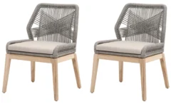 Intricately woven rope and sturdy mahogany framework make these armchairs a total knockout in any room of the home. The seat cushions are upholstered in olefin, a colorfast fabric that is stain-, mildew-, and abrasion-resistant. Suitable for use outdoors and indoors.
