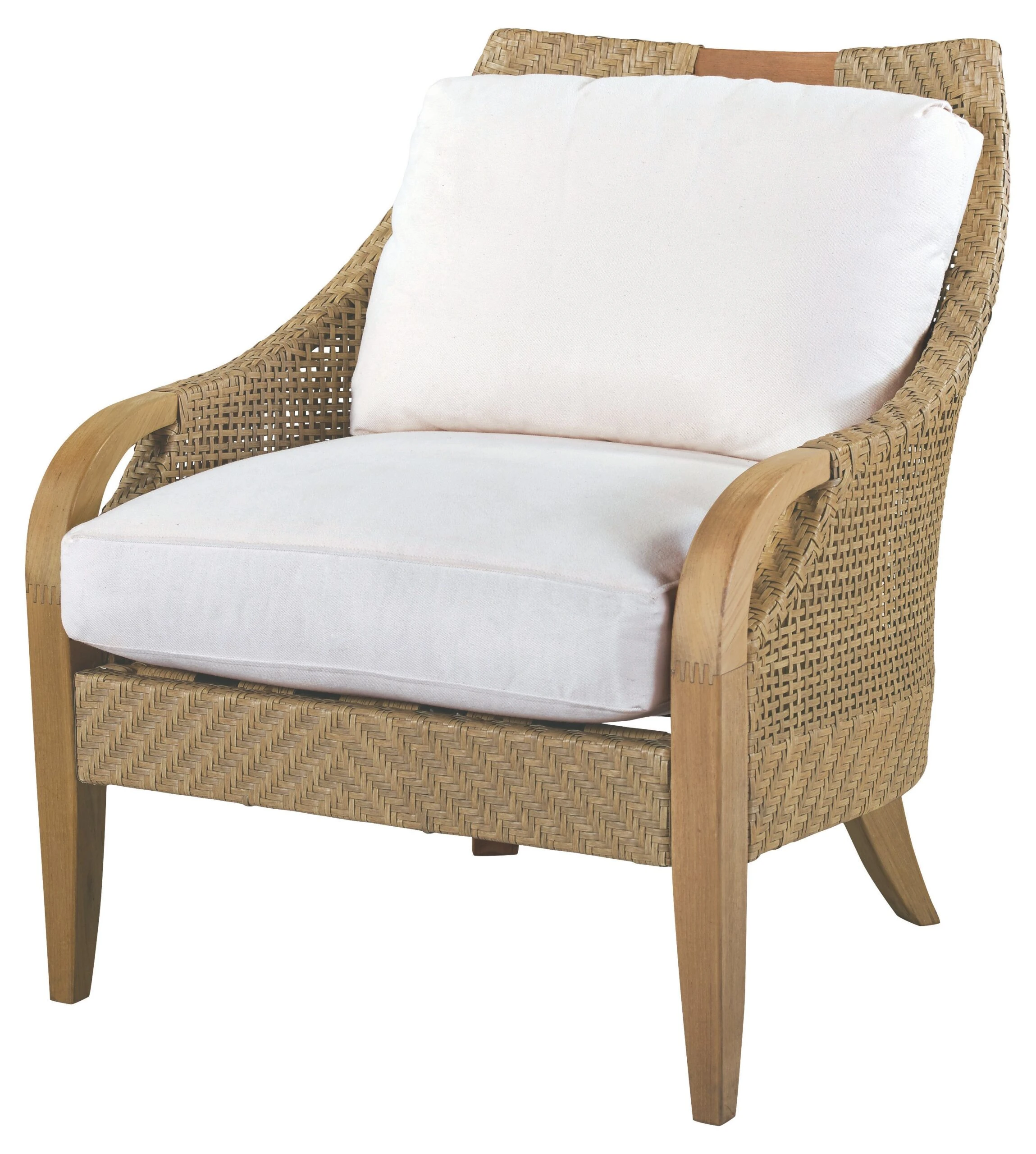 materials: frame, teak/vinyl webbing; upholstery, sunbrella; fill, synthetic fiber