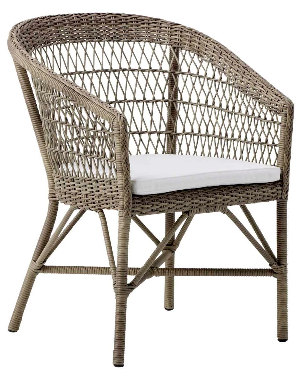 Equally at home on a porch, in a sunroom, or at the dining table, this graceful chair is made of durable, UV-resistant faux wicker woven on an equally durable aluminum frame. The chair is stackable for easy storage.