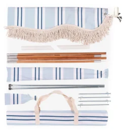 materials: frame, fiberglass; upholstery, uv, water & mold treated canvas; pole, reclaimed timber laminated wood