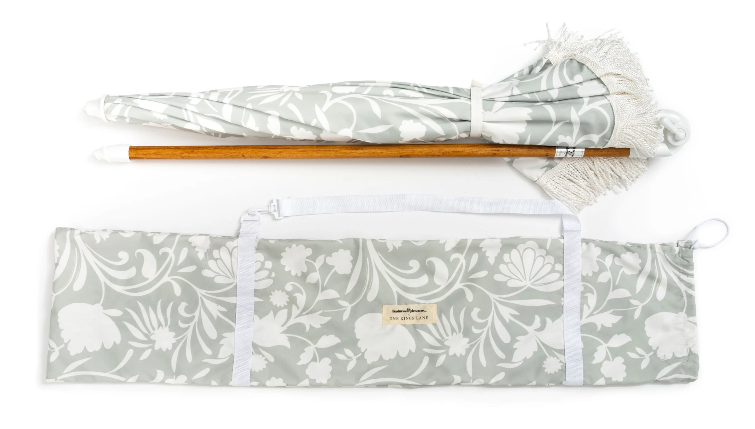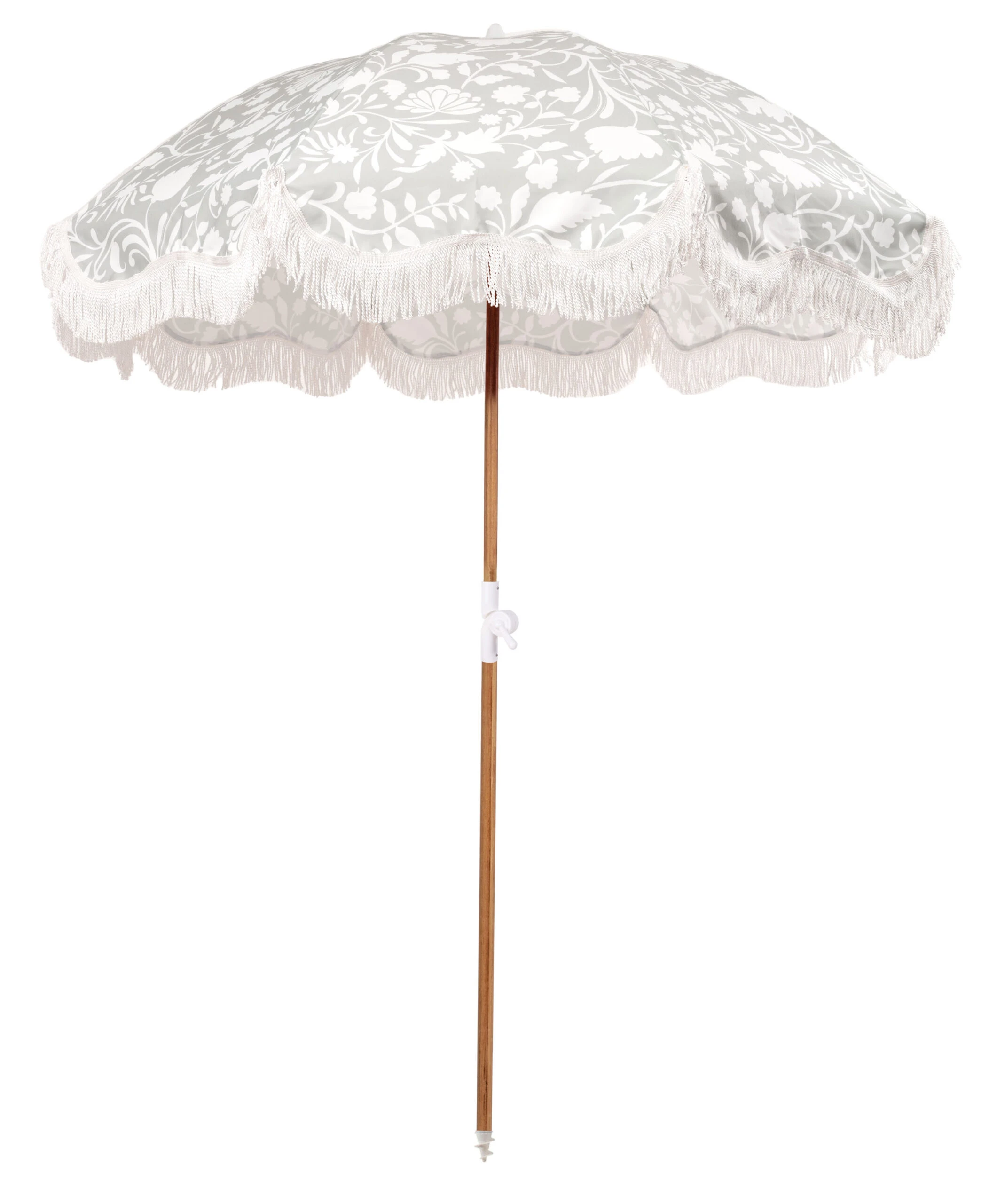 Designed exclusively for One Kings Lane: Lightweight yet durable, this umbrella is designed with a UV-resistant, water-resistant canopy in a fresh floral fabric available only here. Playful cotton fringe completes the look.