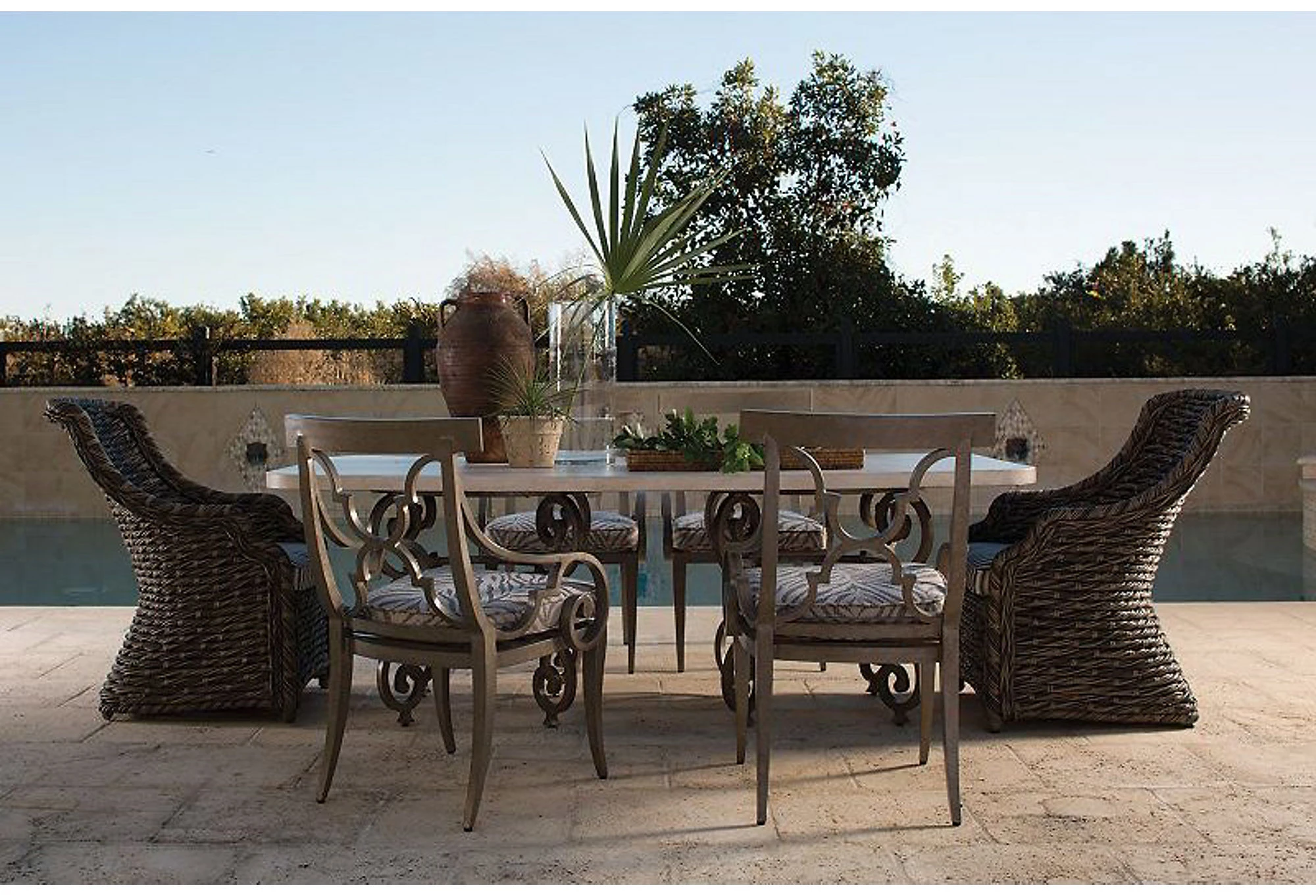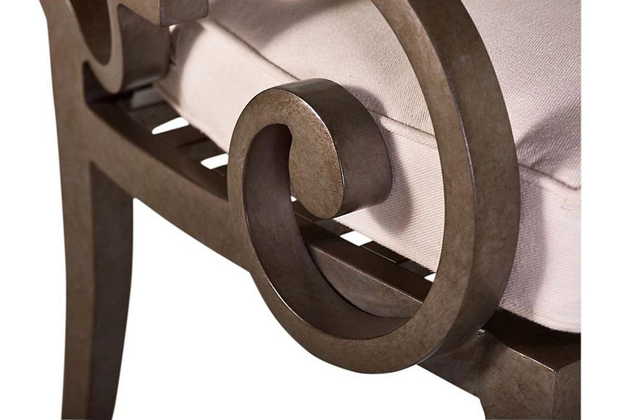 This armchair makes a stylish and practical addition to your favorite outdoor space with its sturdy all-weather frame and amply padded cushion upholstered in durable Sunbrella–an easy-to-clean, solution-dyed acrylic fabric that is colorfast, mold-resistant, and soil-resistant. We love how the dramatic scrollwork of the arms and Moroccan-inspired back give this chair immediate visual impact.