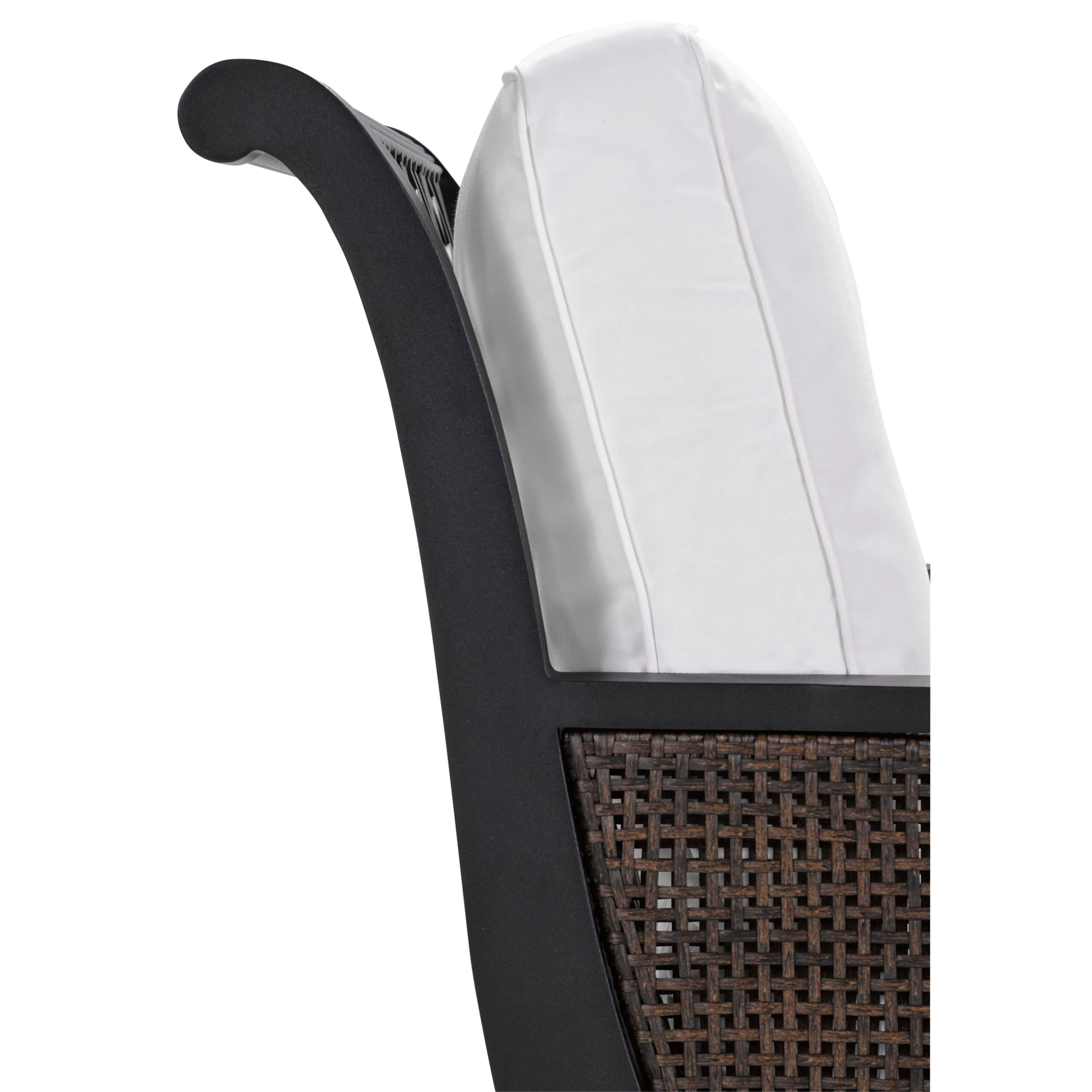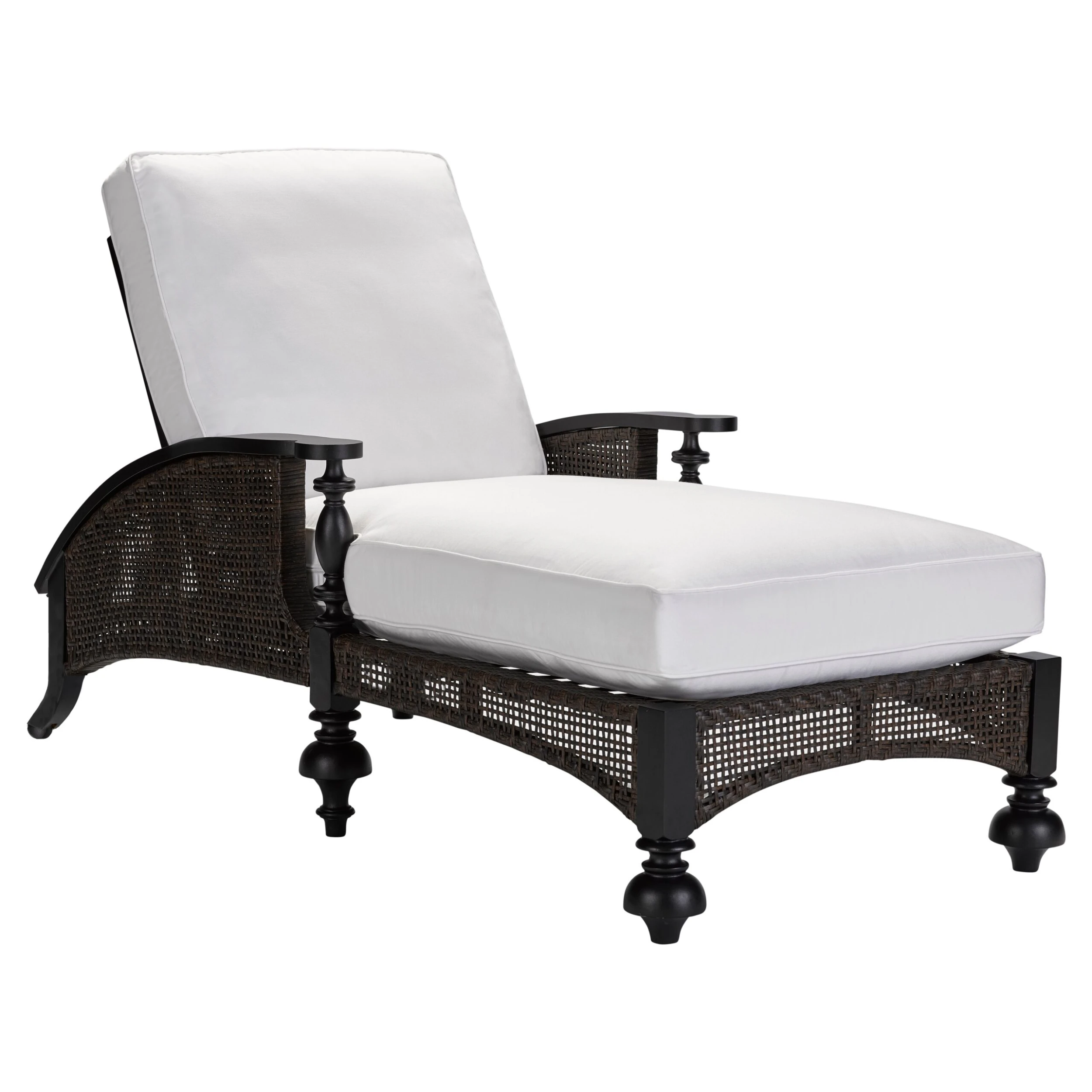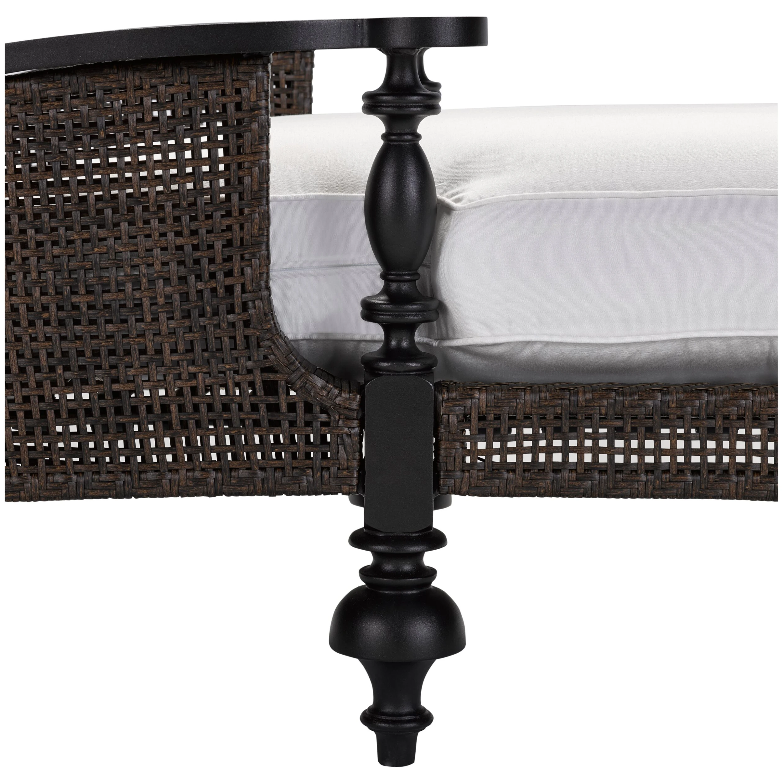 This chaise makes a stylish and practical addition to your favorite outdoor space with its sturdy all-weather frame accented with elegant carvings, woven panels, and beautiful turned legs. Its amply padded cushions are upholstered in durable Sunbrella–an easy-to-clean, solution-dyed acrylic fabric that is colorfast, mold-resistant, and soil-resistant. We love how the dramatic details give this piece immediate visual impact from every angle.