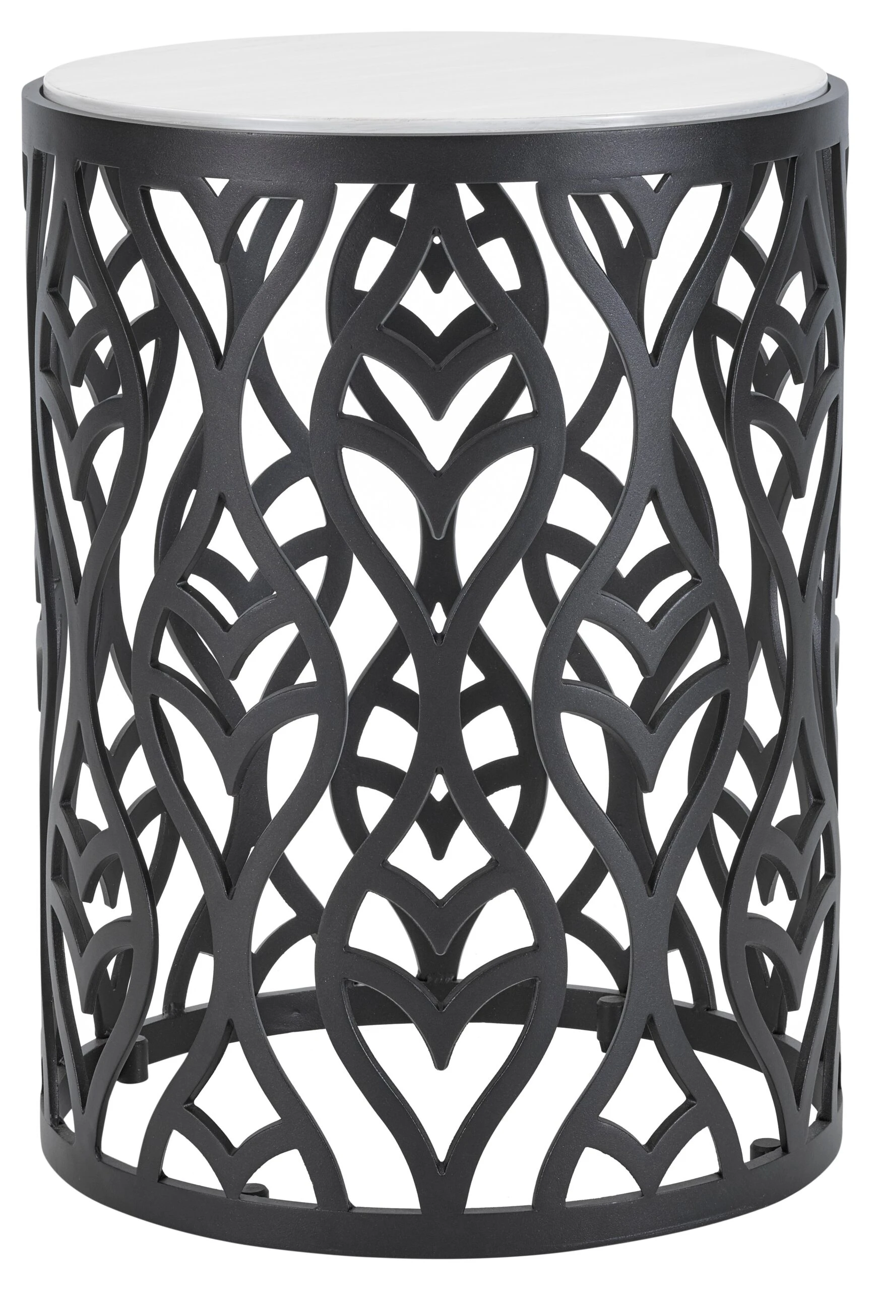This side table makes a stylish and practical addition to your favorite outdoor space with its sturdy all-weather frame accented with elegant carved details and a faux-travertine top made from powder-coated aluminum. We love how the dramatic details give this piece immediate visual impact from every angle.