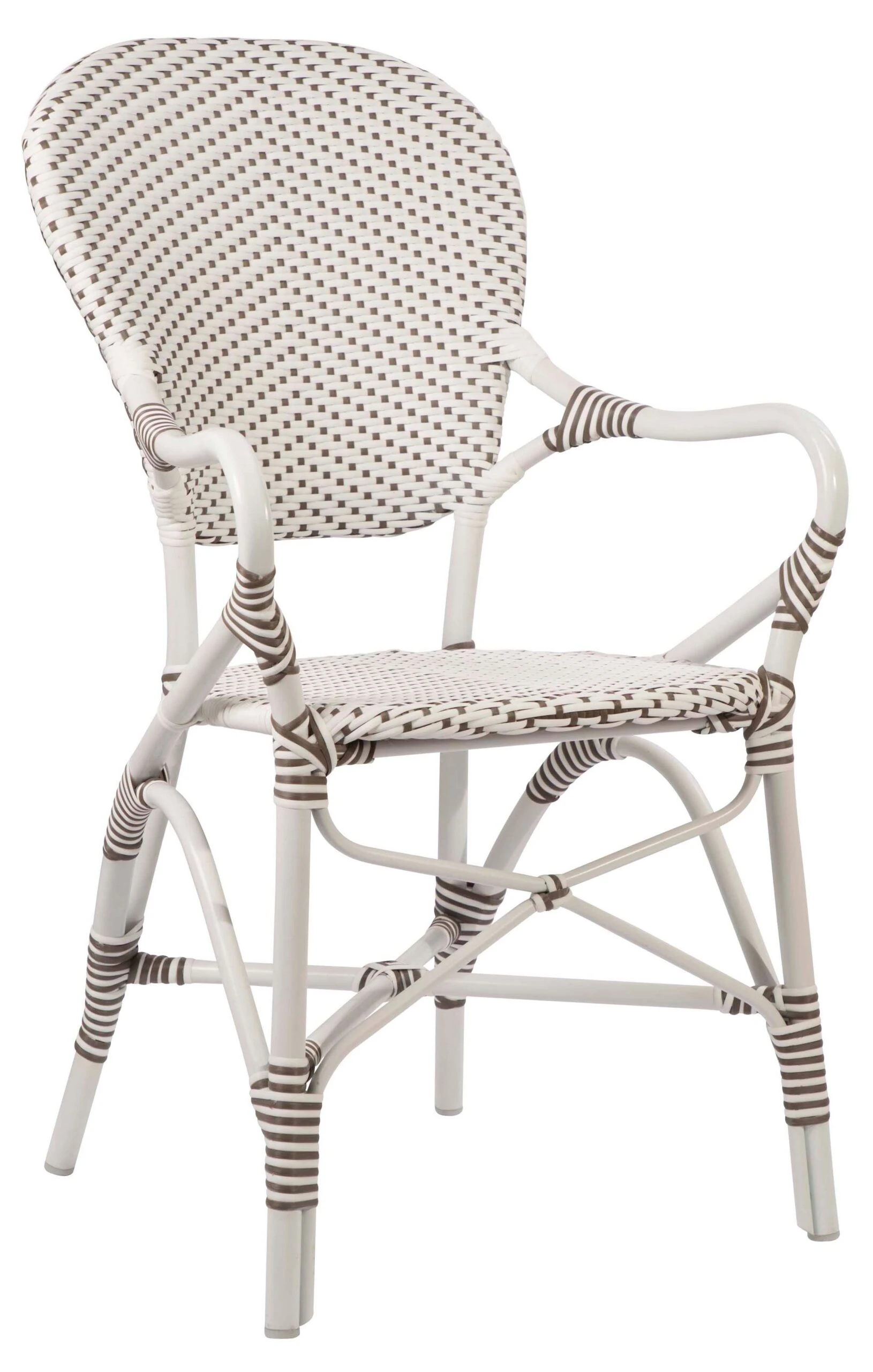 This bistro chair is framed in Alu-Rattan, or sturdy aluminum wrapped in ArtFibre–an easy-to-clean, weatherproof cord–and finished with woven reinforcements. We love how woven white-and-brown accents add a pop of pattern and contrast to the exposed frame. Suitable for indoor or outdoor use.