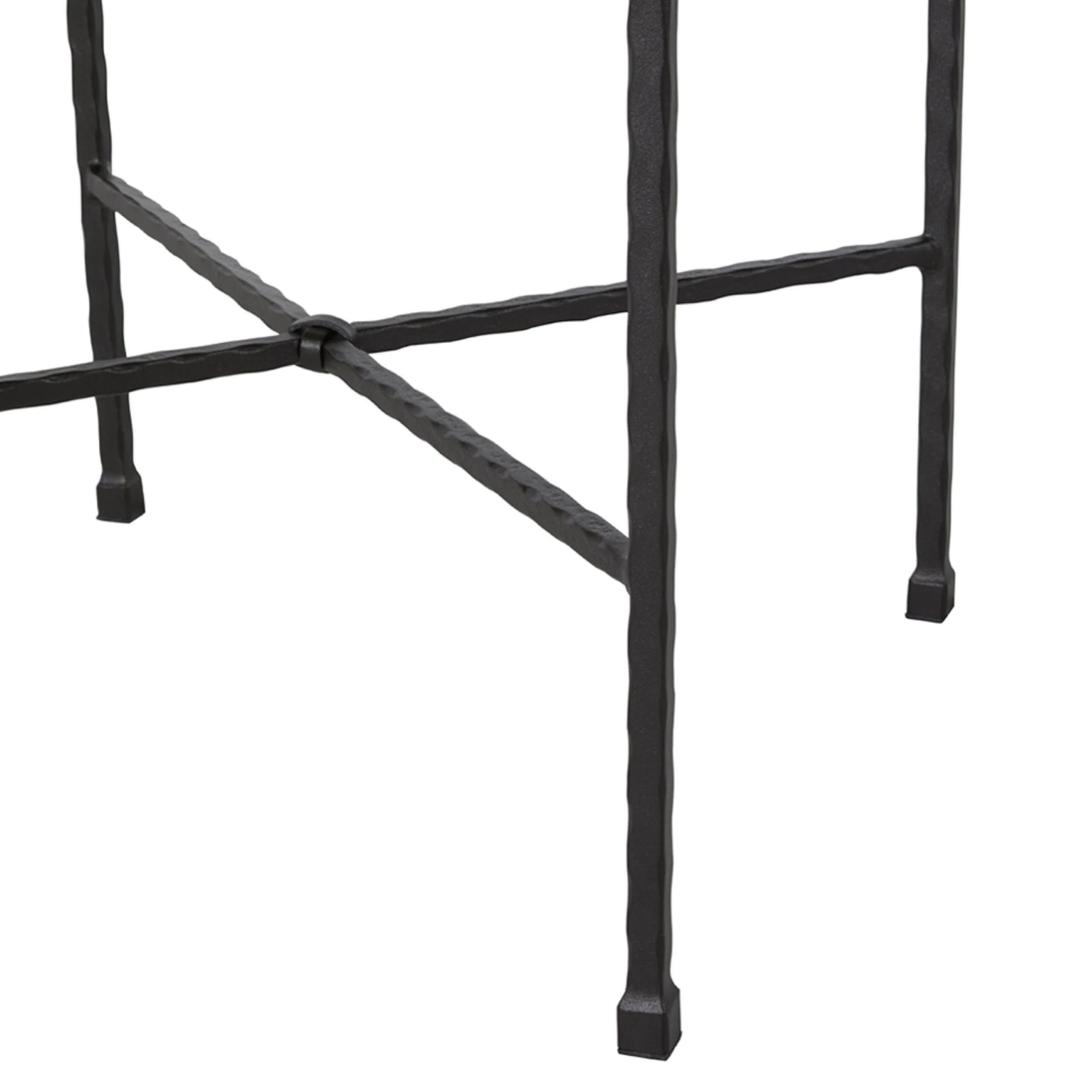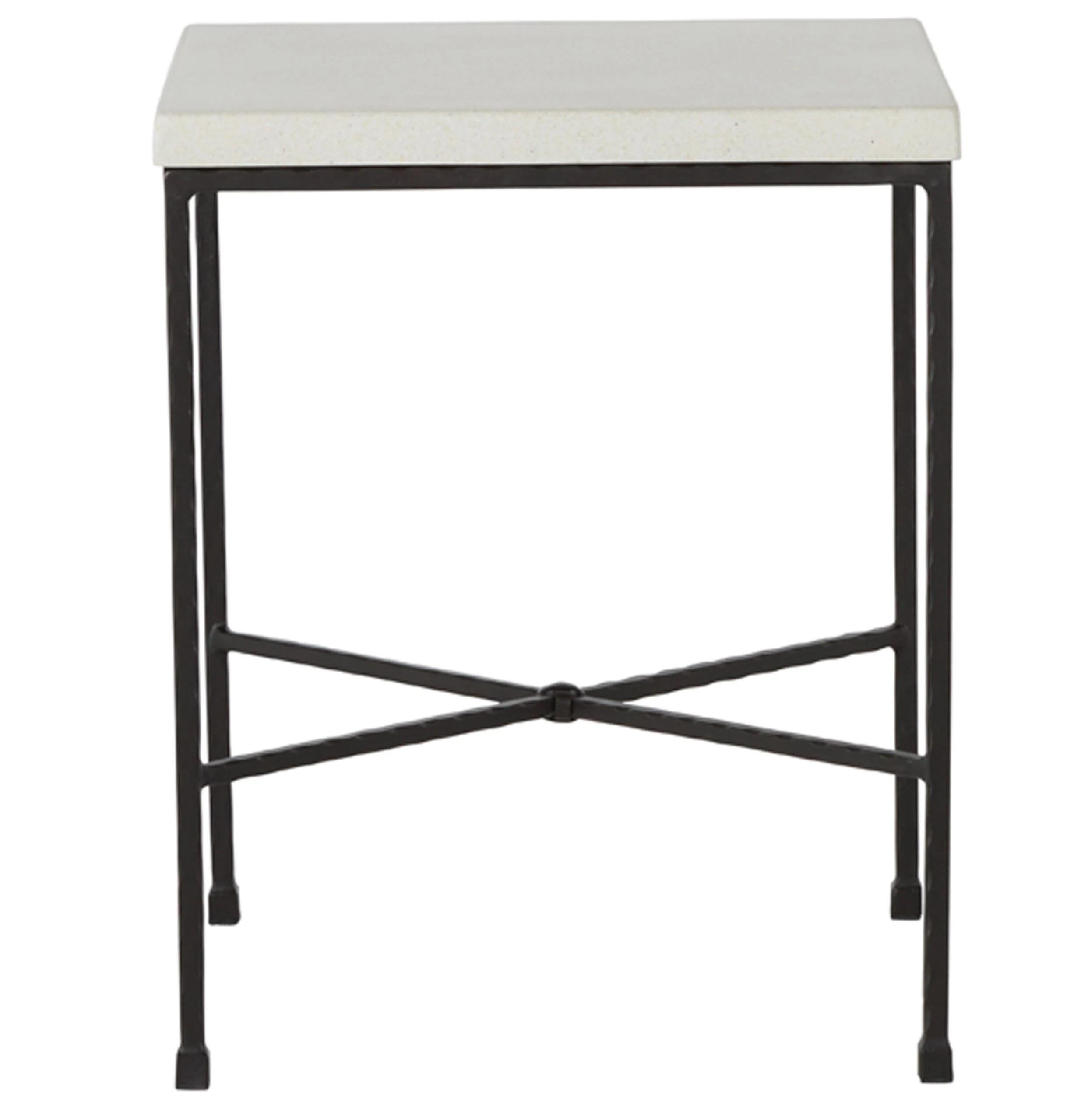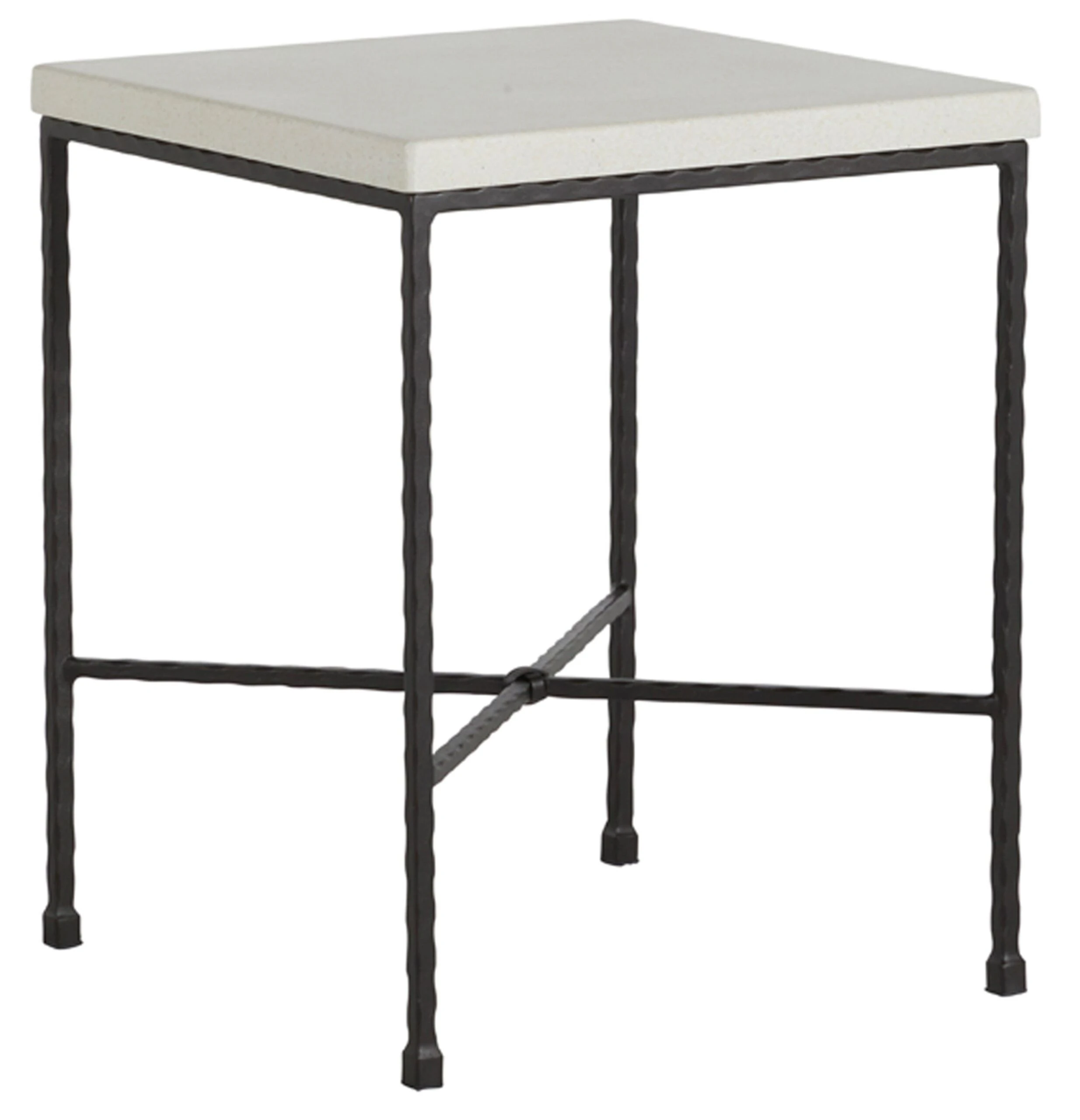 Cast in heavy wrought iron, the Italia 18” Square End Table features a highly durable Superstone surface that’s crafted to weather the elements. A five-layer composite with two layers of cement fiberboard surrounds an aluminum honeycomb core to give Superstone its all-season durability. The Black Hammered Iron frame provides refined support to this multipurpose table that is a handsome addition to the sunroom or the living room. The neutral surface accented by rich black wrought iron gives this table timeless versatility that partners easily with an array of Summer Classics collections.