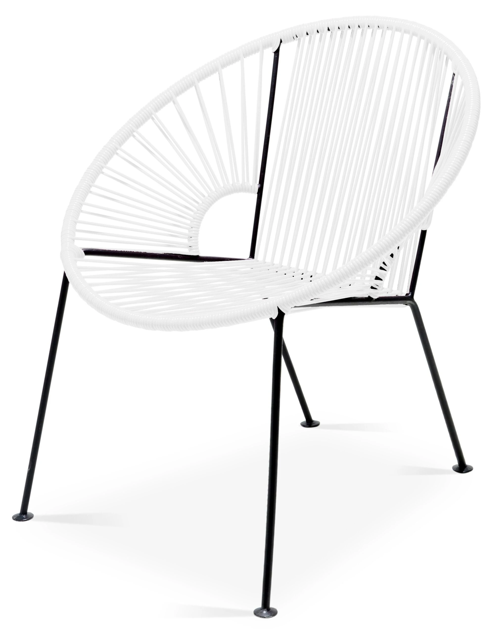 Handcrafted by skilled artisans and certified welders in Mexico, this modern lounge chair is crafted of woven, UV-protected PVC cord in white with a high-contrast, powder-coated steel frame. While it’s designed for use on the porch or patio, a sleek silhouette and impressive durability also make it a great choice for an indoor sunroom or even a playroom.