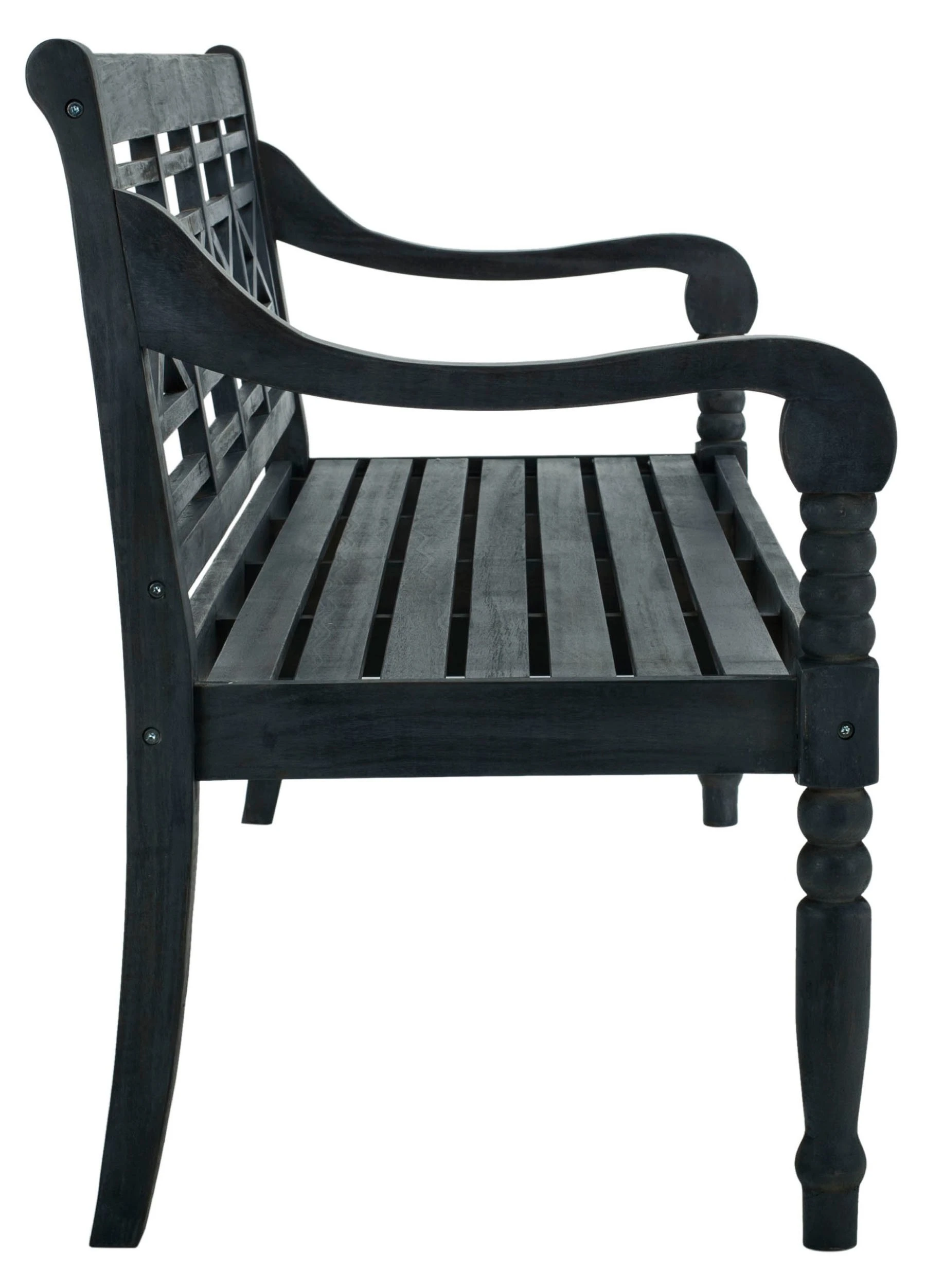 A lovely addition to any porch or patio, this versatile bench is crafted of acacia with turned legs, a beautifully designed back, and dark slate-gray finish.