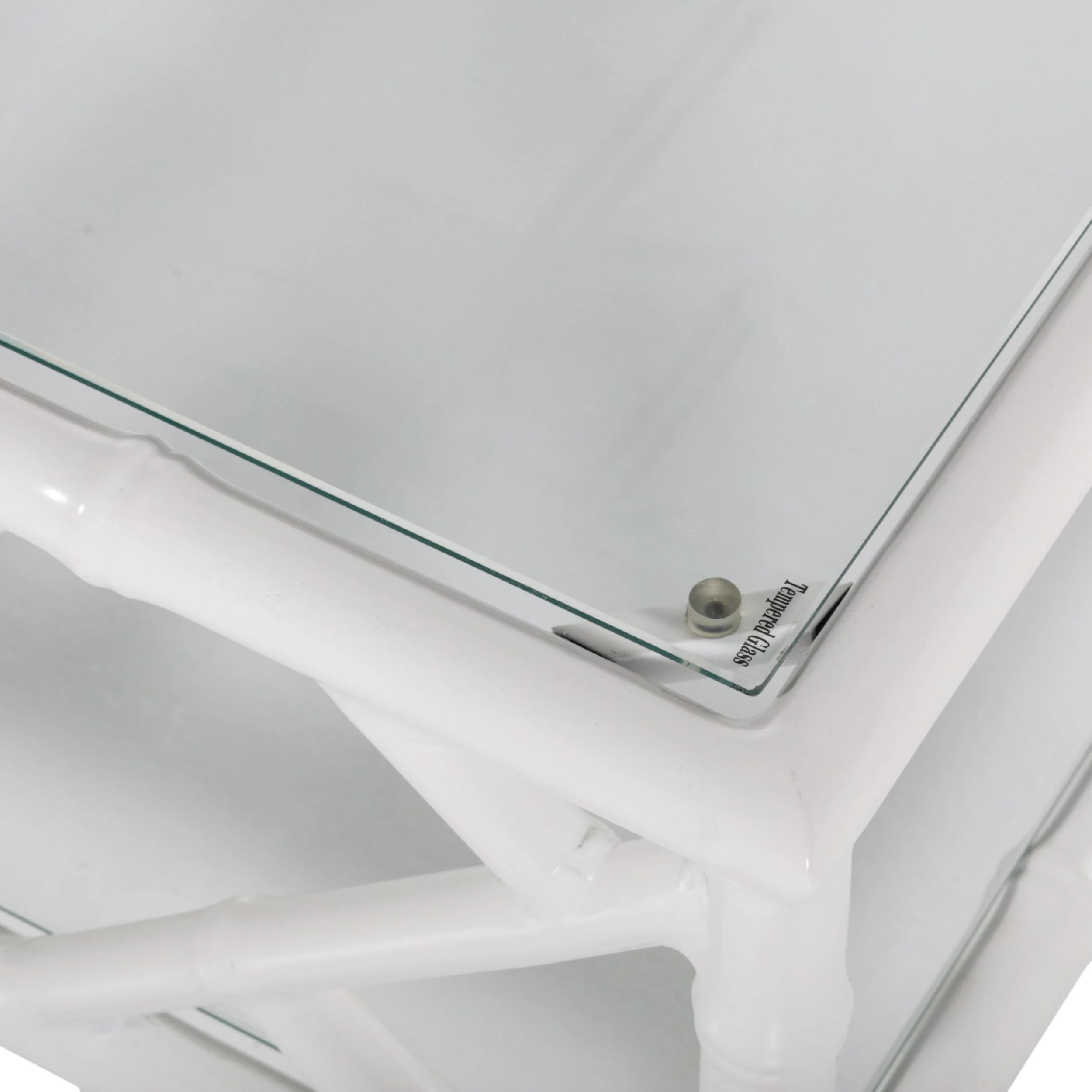 materials: powder-coated tubular aluminum/tempered glass