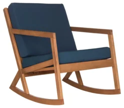 Framed in richly figured acacia coated in a warm brown finish, this clean-lined rocking chair feels right at home on the porch or pool deck. Topped with a navy seat cushion for added style and support.