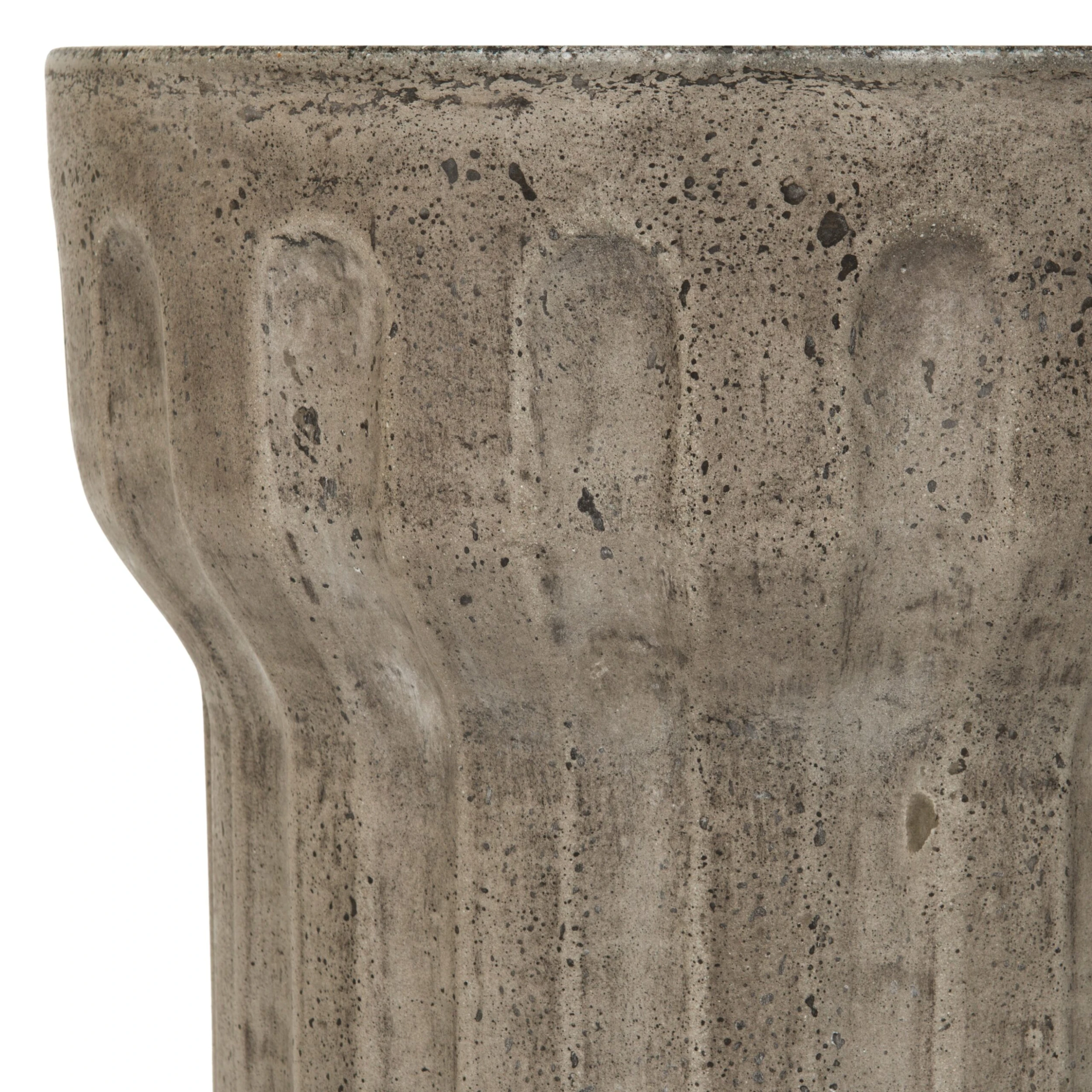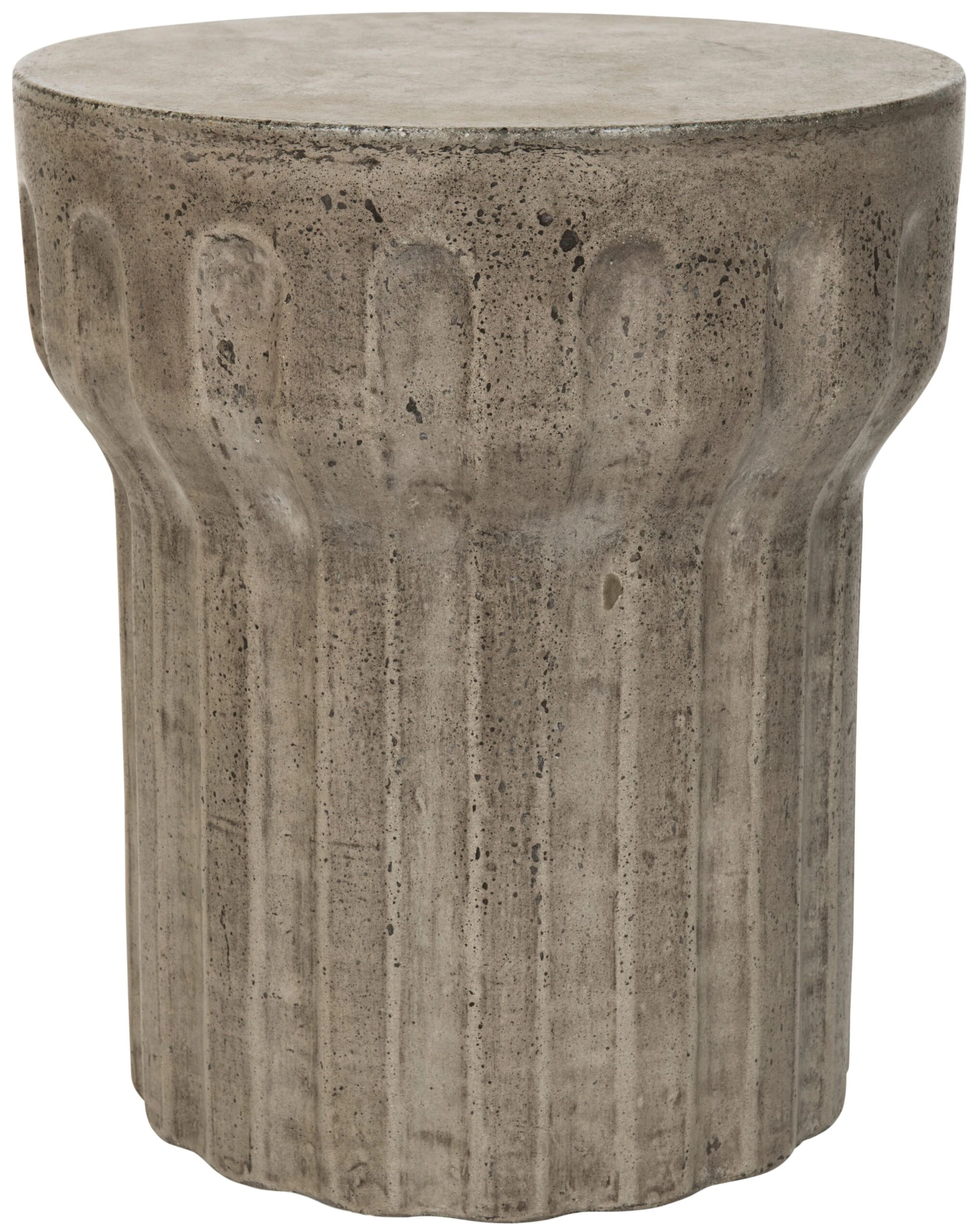 Inspired by the interiors of a luxury seaside resort in Santorini, this concrete side table is a contemporary interpretation of the Grecian Doric column. A dark-gray finish completes the design.