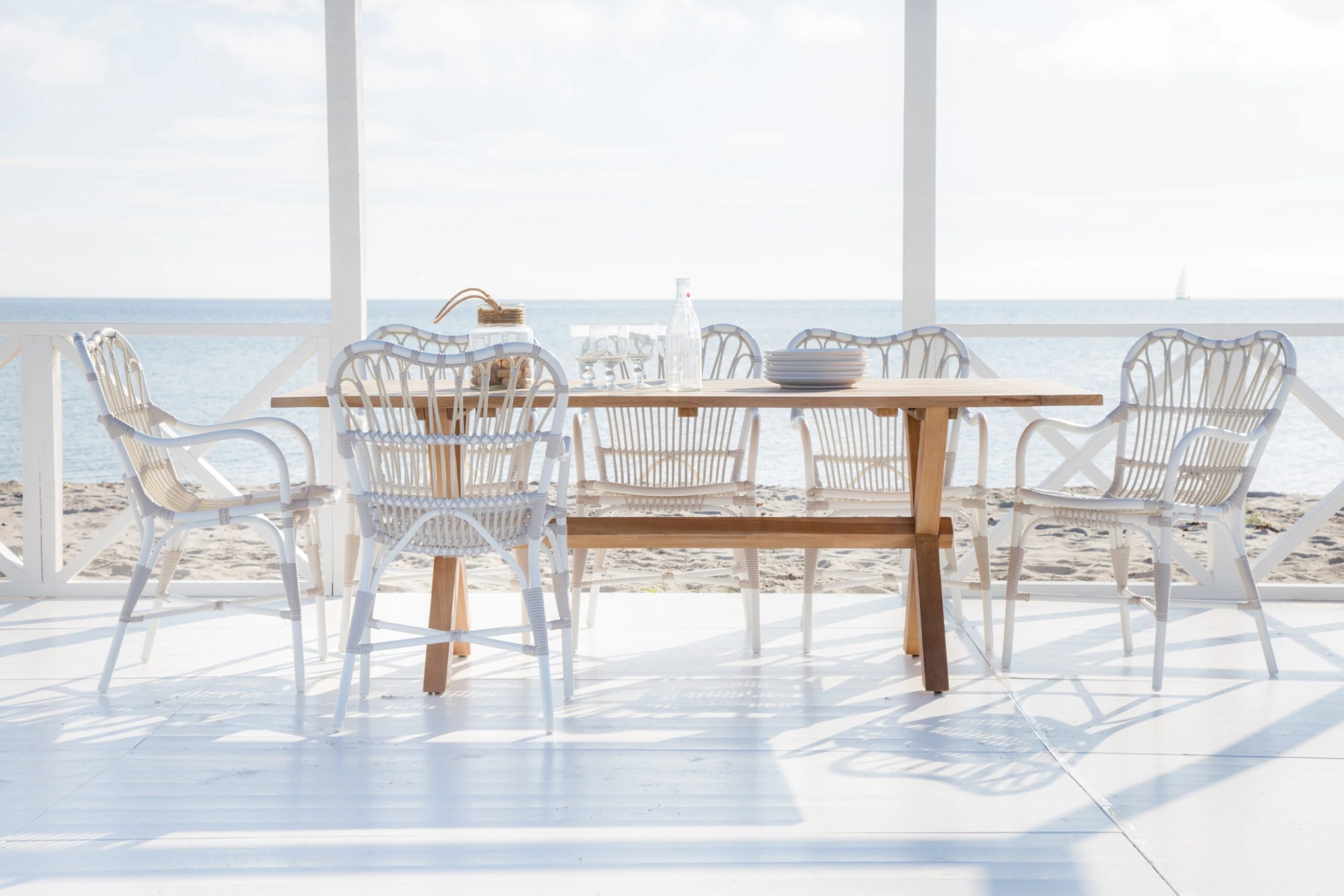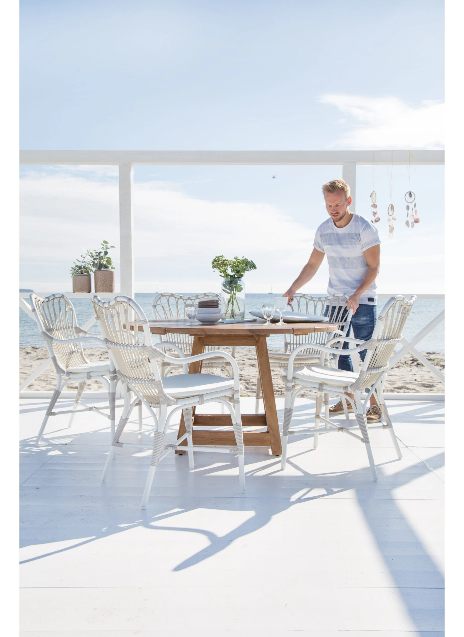 This curvy armchair is framed in Alu-Rattan, or sturdy powder-coated aluminum wrapped in Artfibre–an easy-to-clean, weatherproof cord–and finished with woven reinforcements. Suitable for indoor or outdoor use.