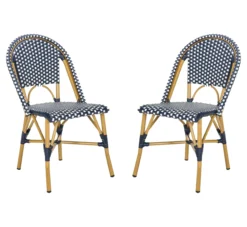 A cool, casual, and practical addition to any indoor or outdoor space, these breezy, bistro-style side chairs are crafted of aluminum in a bamboo-inspired design with a woven seat and reinforced joints wrapped in all-weather cord made to resemble wicker. The stackable design makes for easy off-season storage.