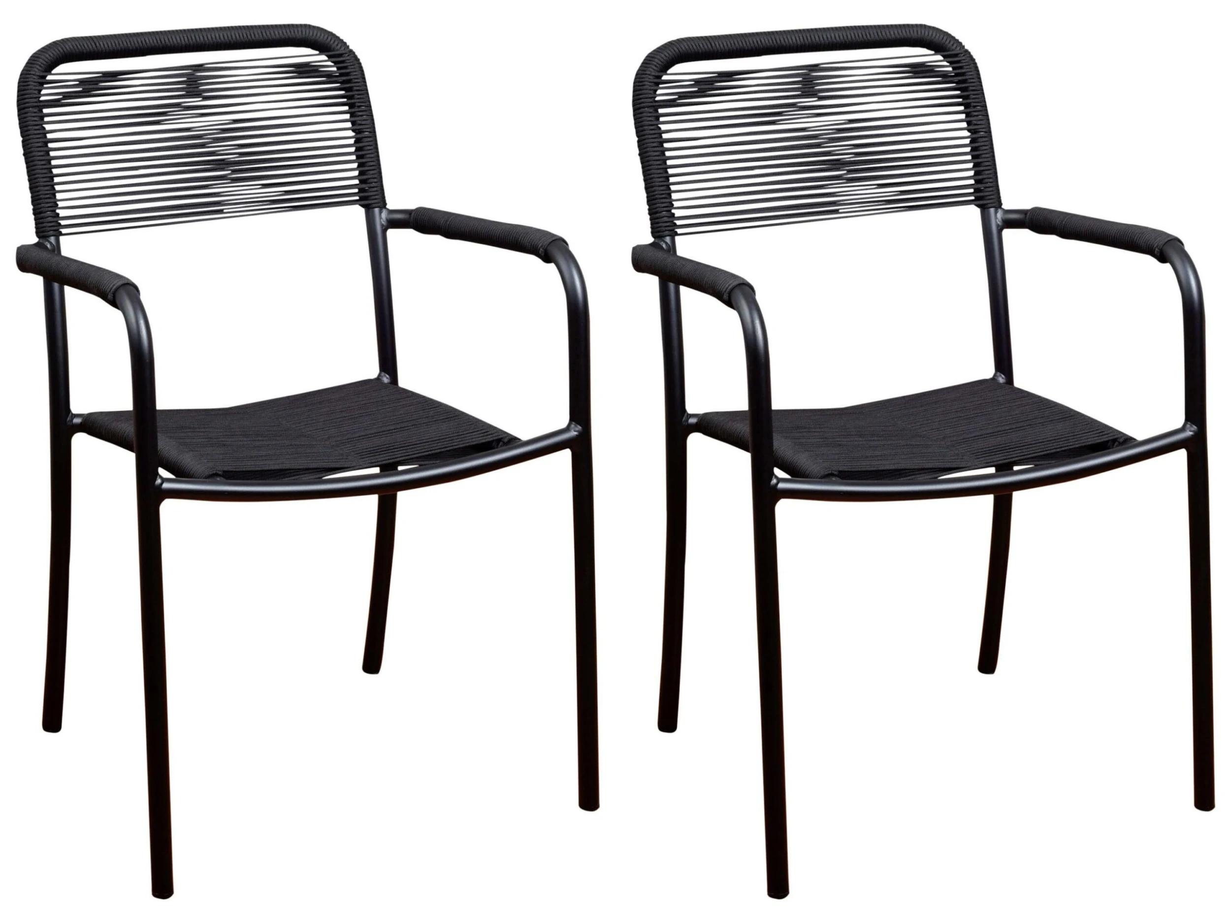 Simple and lightweight in a conveniently stackable design, these armchairs are perfect for outdoor use with their rust-resistant aluminum frames and taut rope seats and backs, all of which are coated in Duracoat, a polymer-based, multilayer coating that ensures protection from the elements.